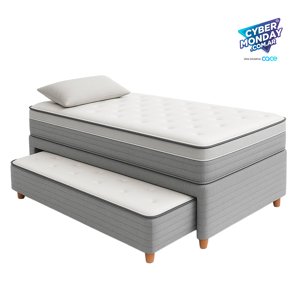 El conjunto incluye sommier de 32 cm de altura, conformando un sistema de descanso de 100 × 190 × 52 cm en total.